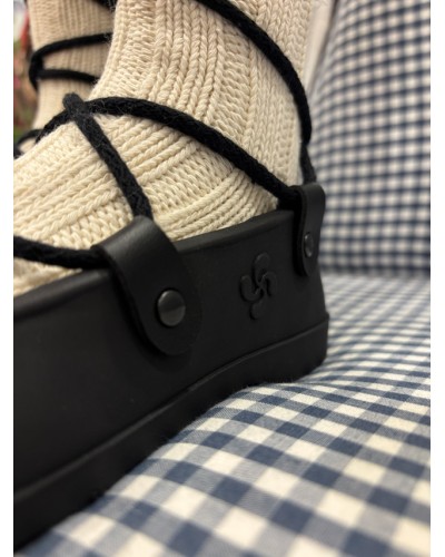 Abarkas negras de goma, cómodas y resistentes, ideales para completar el traje típico vasco en cualquier fiesta, romería o celebración.