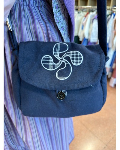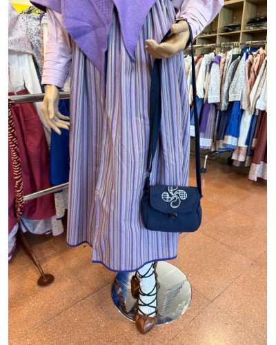 Bolso azul Mahón con laburu bordado. Tamaño 15 x 15 cm, cómodo y tradicional.