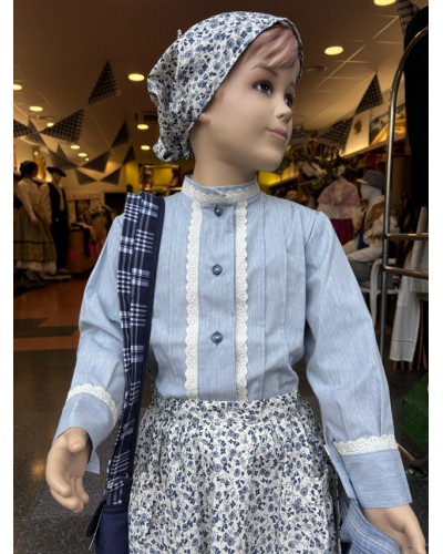 Haurrentzako euskal jantzi erregional multzo hau tonu urdinetan duen dotoretasunagatik nabarmentzen da, soiltasuna eta tradizioa konbinatuz. Bere estiloa belaunaldiz belaunaldi euskal jai eta ospakizunetan lagun izan duen janzkera herrikoian inspiratuta dago.