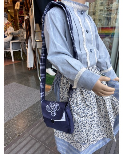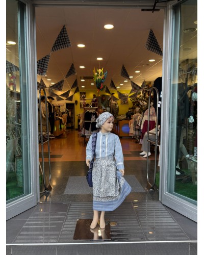 Euskal jantzi urdina mantal estanpatuarekin A49