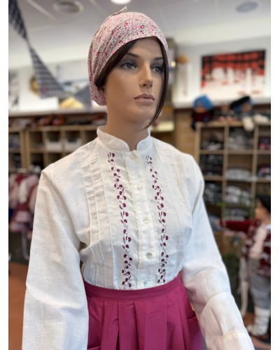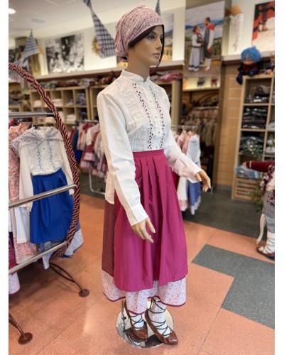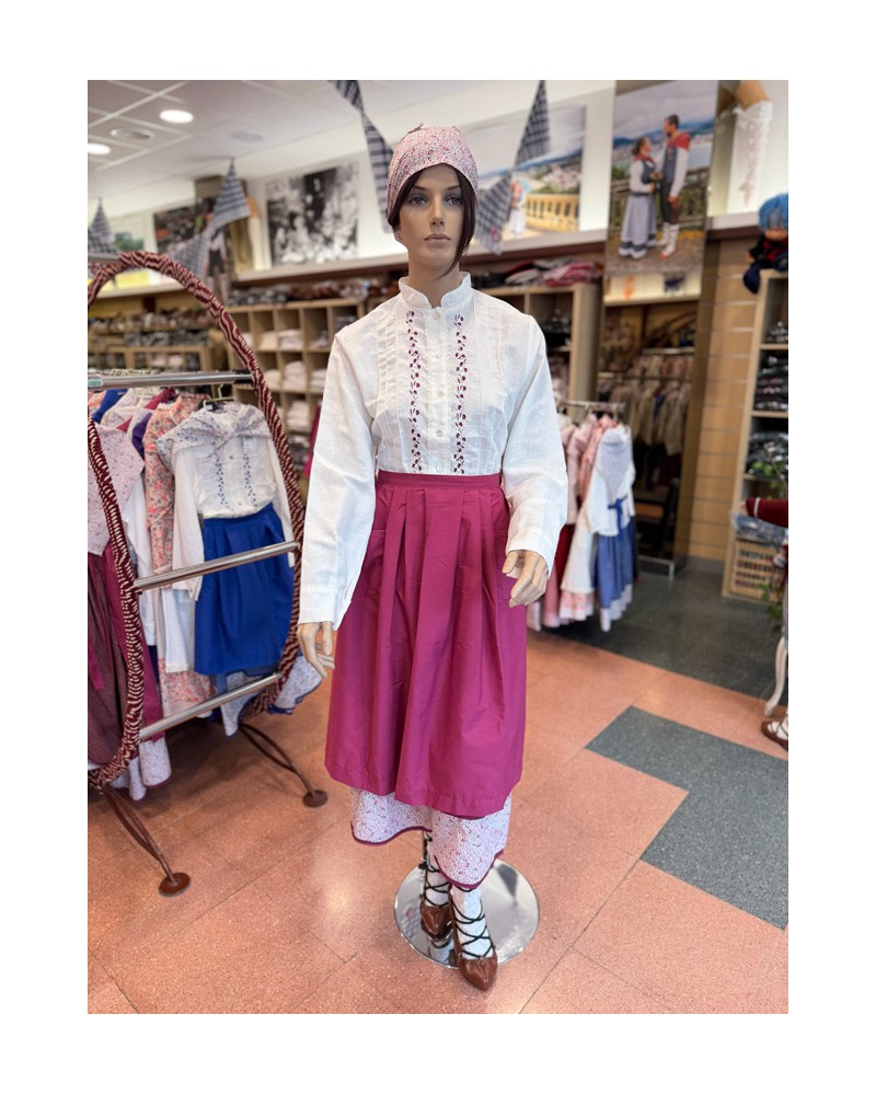 Euskal arropa tradizionalen multzo hau egiazkotasunaren eta dotoretasunaren arteko orekagatik nabarmentzen da, tradizioari leial eta osoa den euskal janzkera bilatzen dutenentzat diseinatua. Paparrean lore-brodatu delikatua duen blusa zuria, artisau-akabera bereizgarria, mozteko gona klasikoa, mantal tradizionala eta euskal jantzi femeninozko benetako look baterako zapi koordinatua ditu.