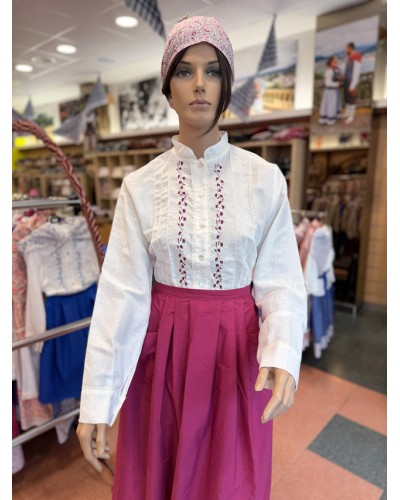 Emakumeentzako euskal jantzia, brodatutako blusa, gona, mantala eta zapiarekin