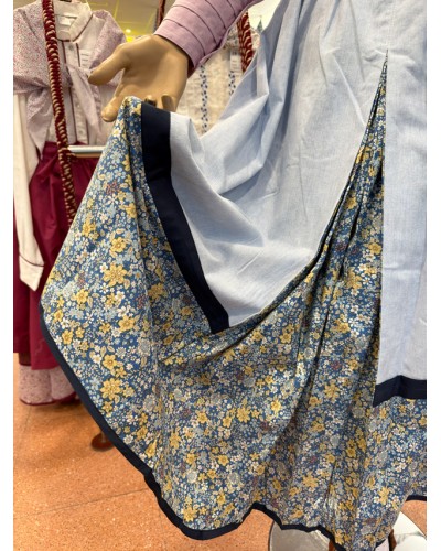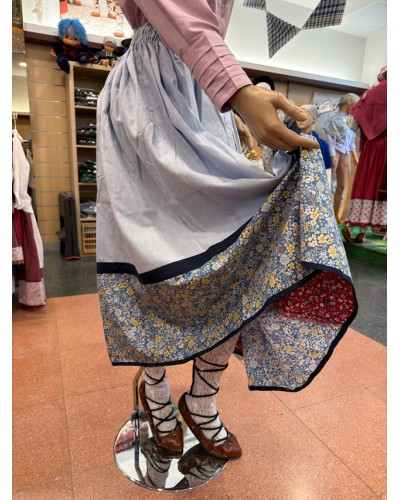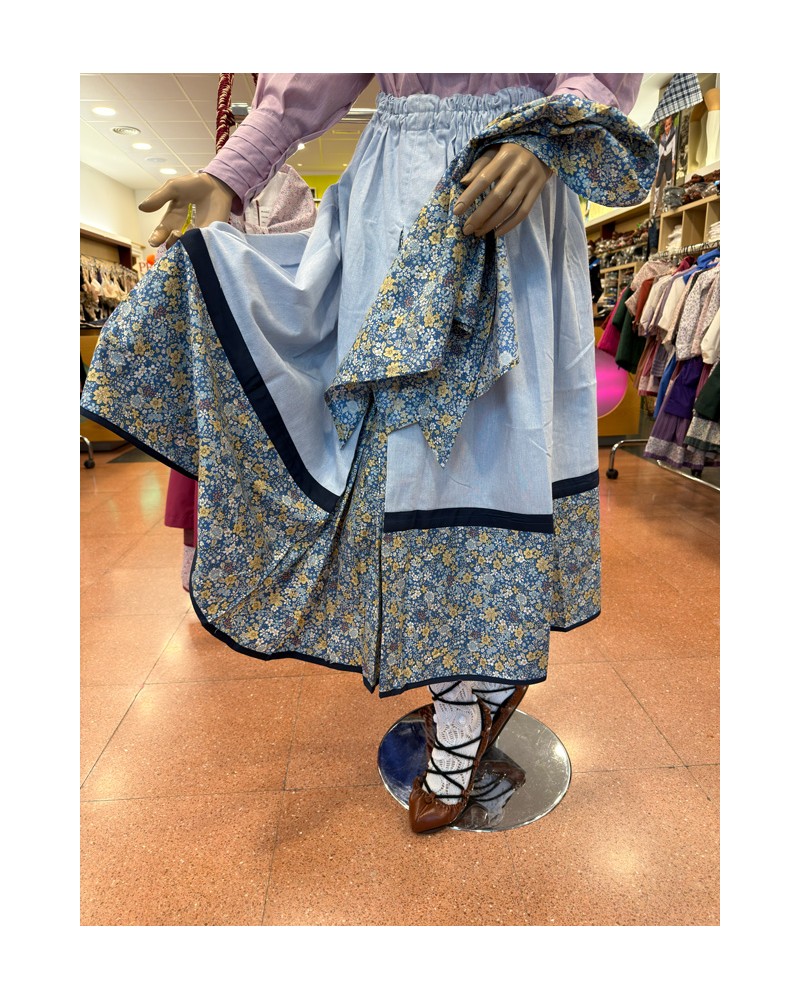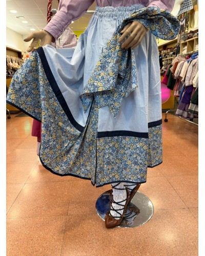 Euskal jantziko gona, tonu urdin argikoa, beheko lore zerrenda eta itsas urdinez apaindutako lerroa dituena, eta zapi bat. Estilo tradizional eta harmoniatsuarekin emakumezkoen euskal arropa-multzoak osatzeko aproposa.