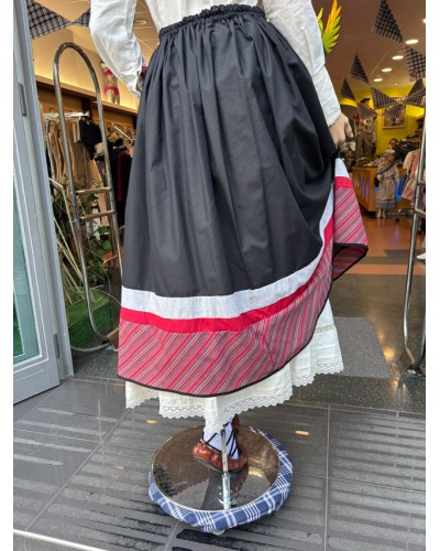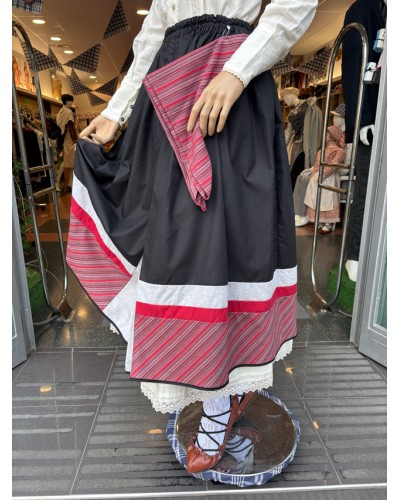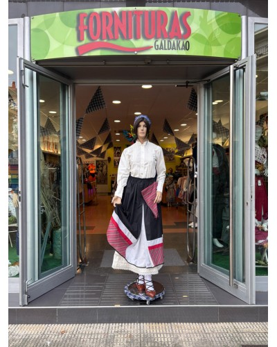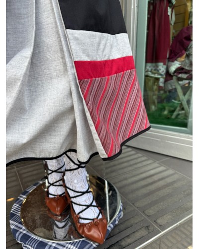 Gona tradizionala beltzez, marra grisekin eta xehetasunak gorriz eta granatez. Jantzi deigarria eta benetakoa zure euskal emakume jantzia osatzeko.