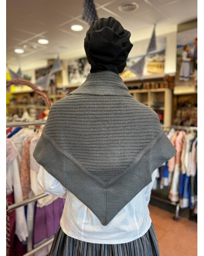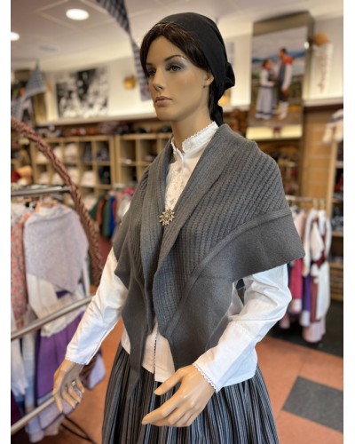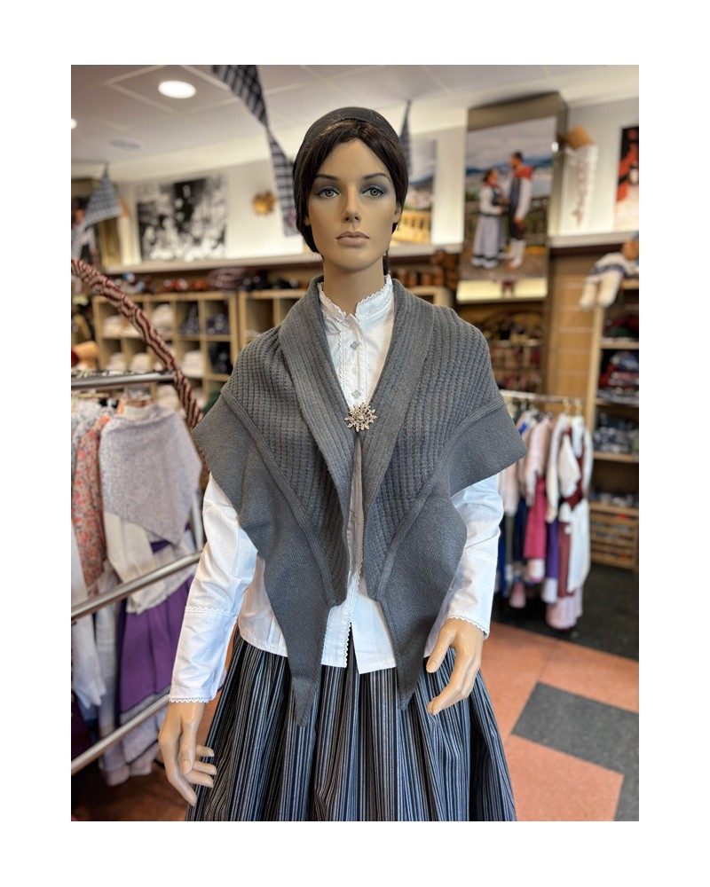 Moko-forma duen emakume gris baten euskal tokila hau osagarri soila eta oso moldakorra da emakumezkoen jantzi tradizionalaren barruan. Puntuz egina, ehundura inguratzaile eta sendoa du, sorbaldetara eroso egokitzen dena, euskal jantzien estetika klasikoa errespetatuz.