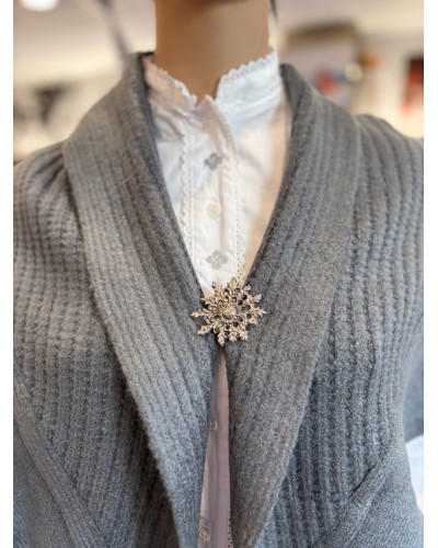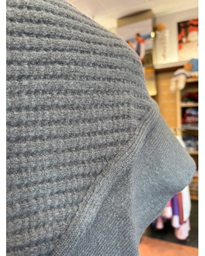 Mokoko akaberak aukera ematen du modu naturalean jartzeko, aurrealdean gurutzatuta edo sorbalden gainean jasota, eta silueta orekatua eta diskretua ematen du. Tonu grisa neutraltasunagatik nabarmentzen da, eta, beraz, blusa zuriekin, gona zerrendatuekin edo estanpatuekin eta kolore desberdinetako mantalekin konbinatzeko aukera erraza da.