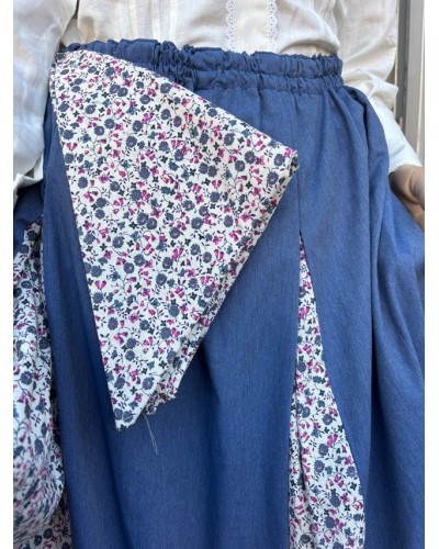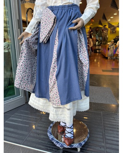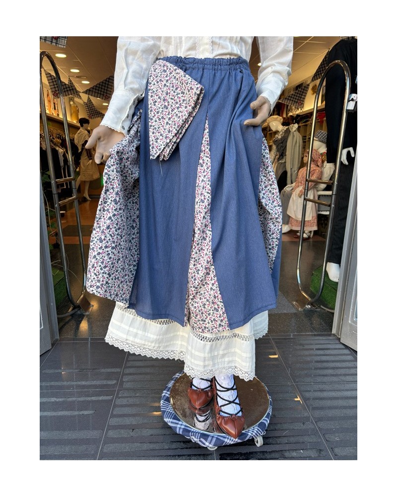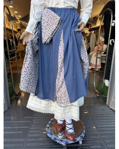 Emakume-gona tradizionala, kolore urdinekoa, lore-xehetasunekin eta musuzapiarekin. Gerri elastikoa, ehun erosoa eta diseinu ezin hobea eskualdeko jantzietarako eta jai herrikoietarako.