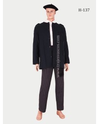 Gizon-jantzi euskalduna, forratutako itsas kaiku urdinarekin, lorzazko alkandora eta galtza marradunak. Multzo tradizional osoa eta dotorea.