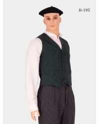 Euskal jantzia diseinuzko txaleko berdearekin, lorzazko alkandora eta botoidun galtza grisekin. Multzo dotorea eta desberdina.