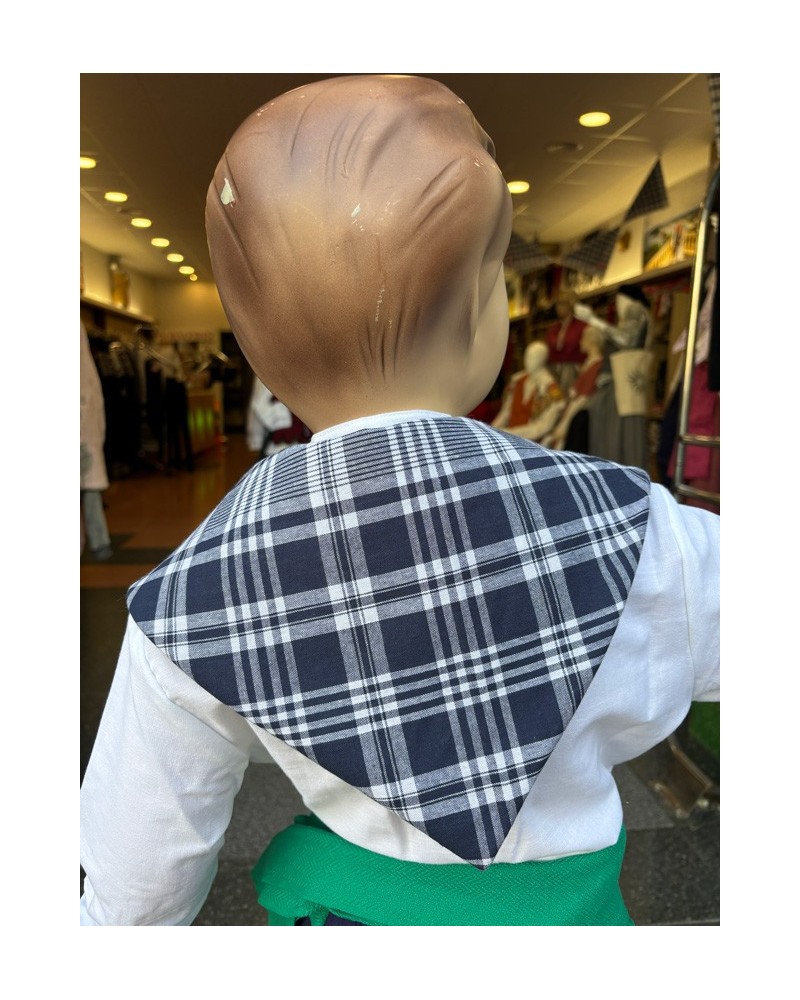 Haurrentzako euskal zapi urdin koadroduna, eredurik klasikoena eta merkeena. Unisex, haur baten euskal jantzia osatzeko aproposa.