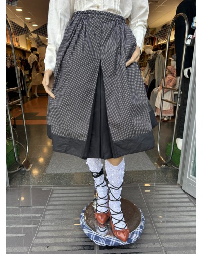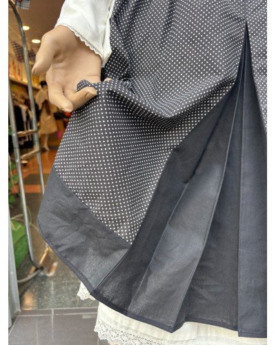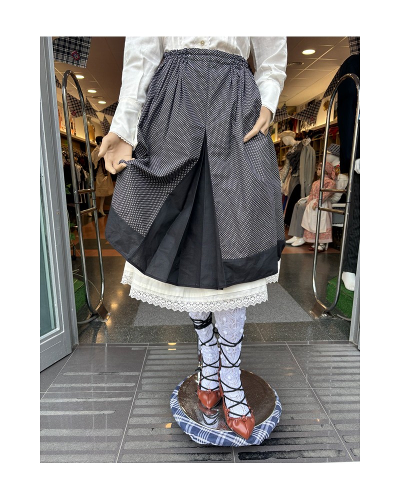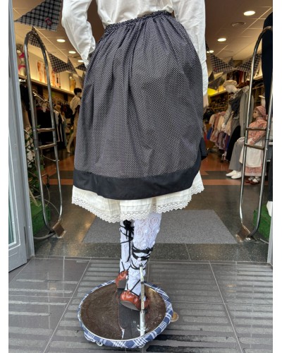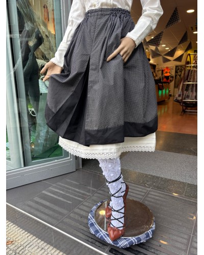 Falda negra de traje regional vasco para mujer, con estampado de pequeñas motas. Prenda tradicional ideal para completar tu indumentaria vasca en fiestas y celebraciones.