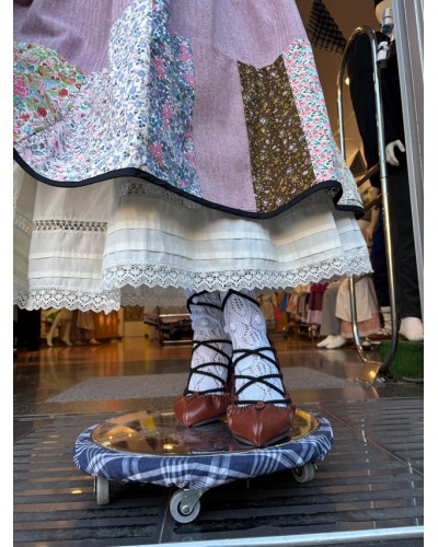 Falda vasca granate con patchwork floral en el bajo