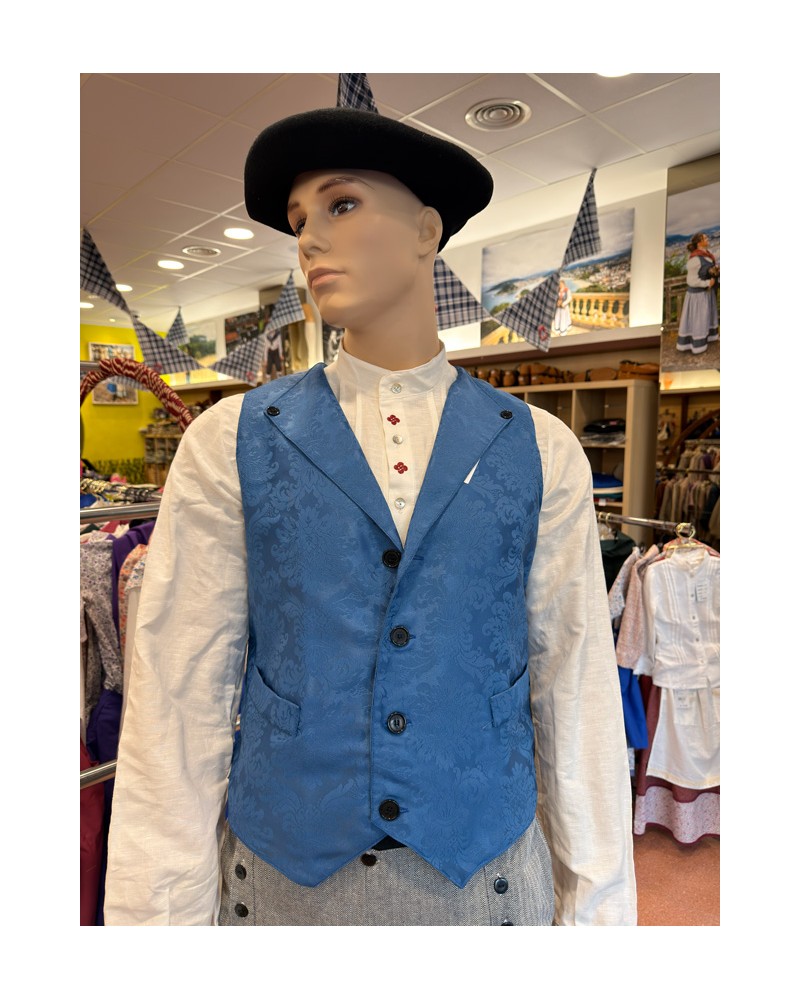 Chaleco vasco de hombre azul adamascado tradicional