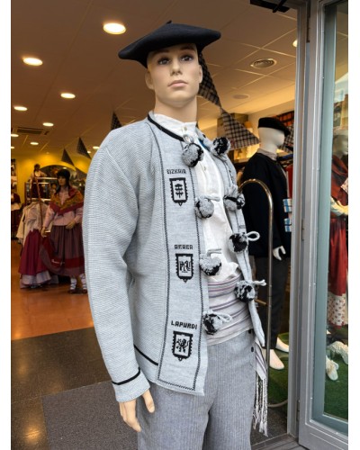 Mendigozale gris tradicional vasco de diseño clásico. Prenda emblemática del traje vasco, ideal para fiestas populares, dantzas y eventos culturales.