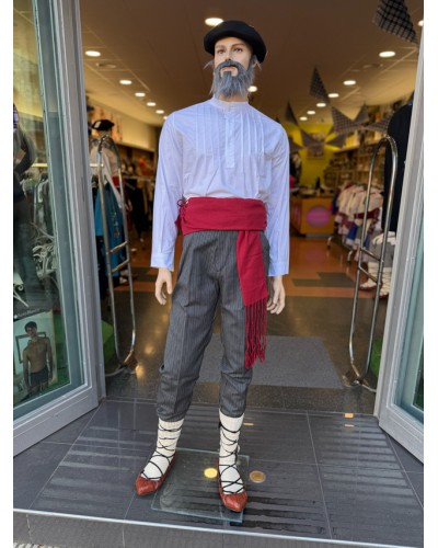 Este traje vasco de hombre está inspirado en el estilo tradicional arrantzale, una de las vestimentas más representativas del País Vasco. Se trata de un conjunto completo pensado para quienes buscan un traje vasco auténtico, cómodo y visualmente fiel a la tradición.