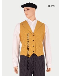 En la vestimenta tradicional vasca el chaleco es una prenda muy utilizada, este modelo de color amarillo oro está especialmente diseñado para ser utilizado la celebración de bodas.