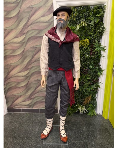 Uno de los elementos más especiales es el pañuelo portugués, que aporta un toque decorativo muy característico y colorido. Este tipo de pañuelo es muy utilizado para enriquecer visualmente el conjunto y aportar un estilo más elaborado dentro de la tradición.