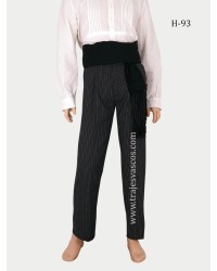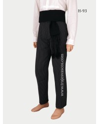 Este pantalón tradicional vasco, color gris con rayas finas negras es clásico para combinar con camisas de lino en color blanco o crudo.
