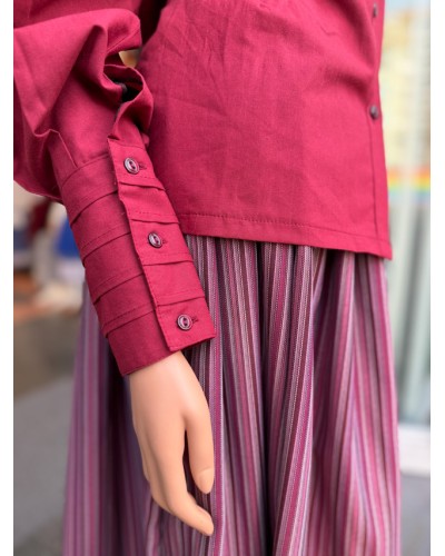 Blusa vasca granate con lorzas en la pechera para traje vasco