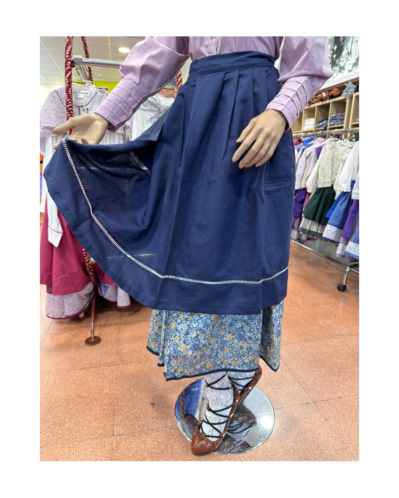 Delantal tradicional vasco confeccionado en lino azul marino, ideal para completar trajes vascos femeninos con un acabado elegante y auténtico dentro de la indumentaria vasca.