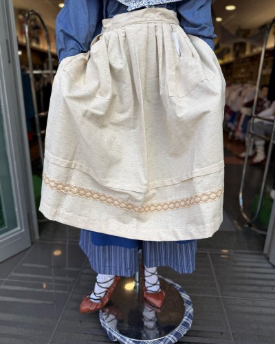 Delantal vasco en color tostado ideal para completar trajes vascos con un estilo auténtico y elegante. Una prenda clave dentro de la ropa vasca femenina y los conjuntos de euskal jantziak.