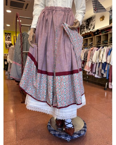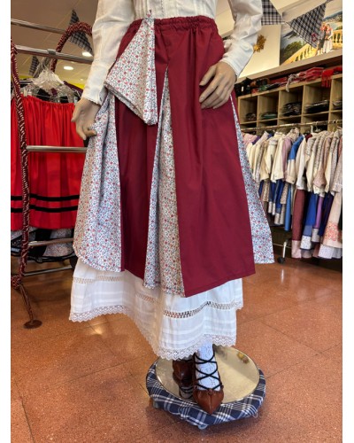 Nuevo Falda granate de mujer con... Precio 106,90 € Falda granate de mujer con piezas estampadas en flores y pañuelo a juego. Cintura elástica, diseño tradicional y perfecta para trajes vascos,...