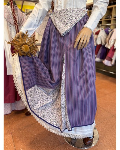 Nuevo Falda vasca morada y lila... Precio 94,50 € Falda vasca en tonos morados y lilas, confeccionada en tejido listado y combinada con pañuelo floral incluido que aporta color y movimiento al...