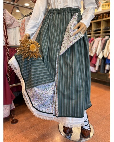 Falda traje vasco mujer... Precio 99,50 € Falda azul de traje regional vasco para mujer con pañuelo verde a juego. Una prenda tradicional con contraste de colores para completar tu...
