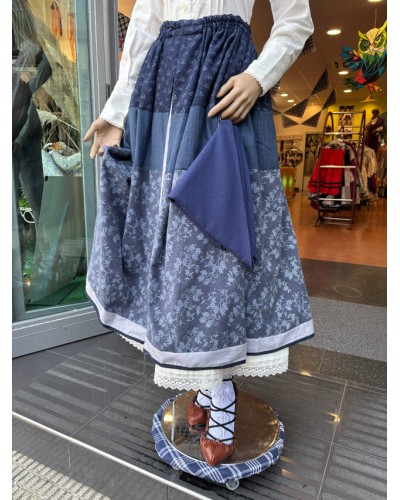 Falda traje vasco mujer azul con pañuelo a juego M263