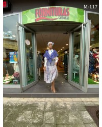 Destaca por su corte ajustado, que estiliza la figura, y por la armonía entre sencillez y detalle, convirtiéndola en una prenda muy versátil dentro del conjunto vasco. Los bordados aportan un toque distintivo sin recargar el diseño.