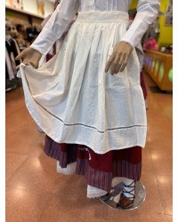 Delantal tradicional vasco de mujer en color crudo, realizado en lino, con entredós decorativo y bolsillos. Un complemento elegante y atemporal para el traje tradicional.