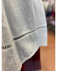 El diseño incluye entredós decorativo en el bajo y en los dos bolsillos delanteros, aportando un acabado fino y equilibrado sin perder autenticidad. El lino le confiere ligereza, frescura y una caída natural, ideal para romerías, bailes vascos, celebraciones populares y actos culturales.